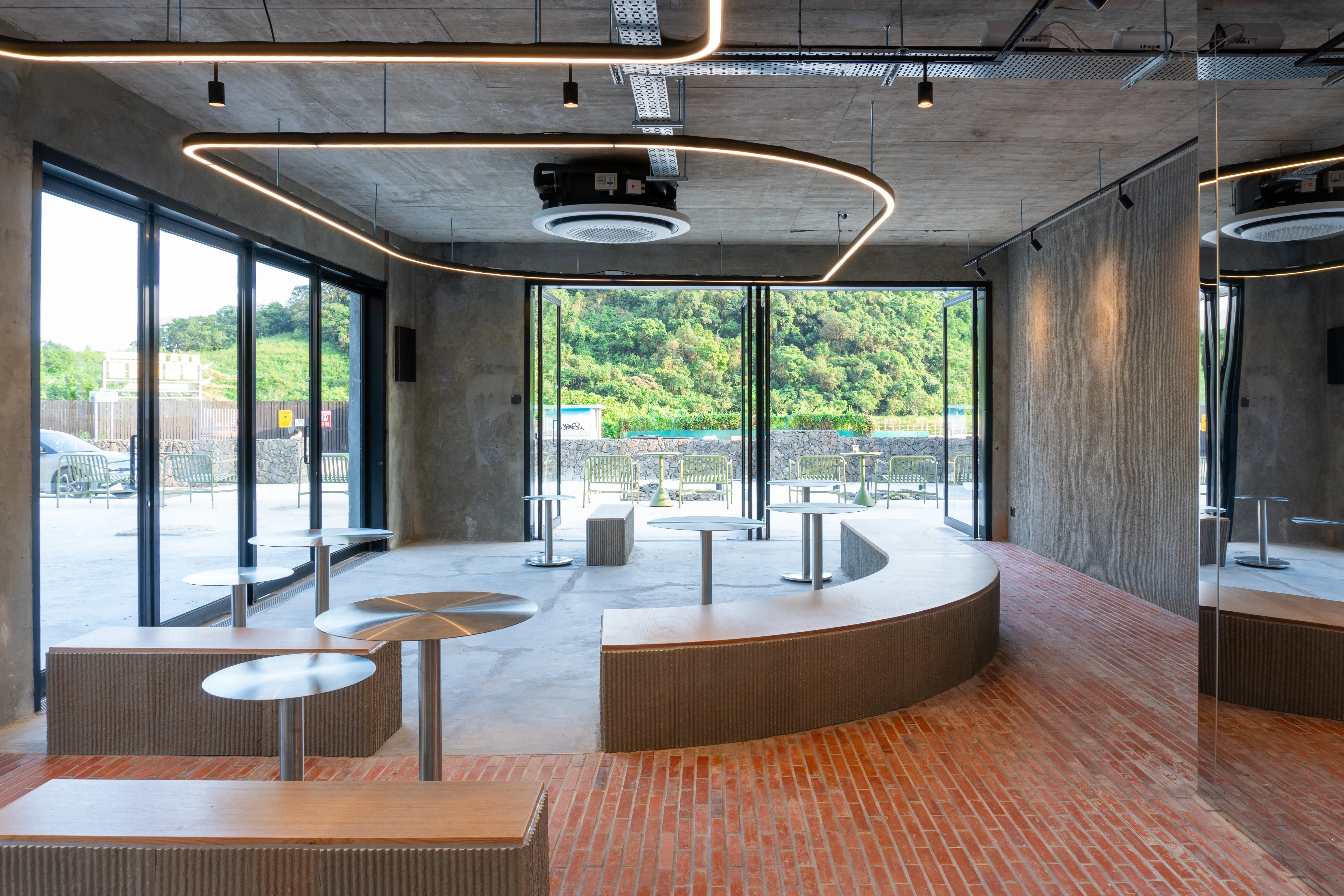 In the Jeju dialect of South Korea, ‘ta’ means island and ‘mora’ means gathering; and this three-storey waterside café has become an online/ offline sensation for picturesque rendezvous, thanks to a café atmosphere reminiscent of Jeju Island’s. Its minimalist interior is the work of Hong Kong- and Paris-based Korean company PLKA Studio, which used elements such as an arched wall and extensive glazing to bring the café’s verdant surroundings close. Though predominantly concrete, the decor is elevated by eccentric brick, wood, leather and metallic details. Order Jeju’s signature matcha latte and ade and enjoy some time surrounded by nature … with an irresistible croissant-waffle ‘croffle’.